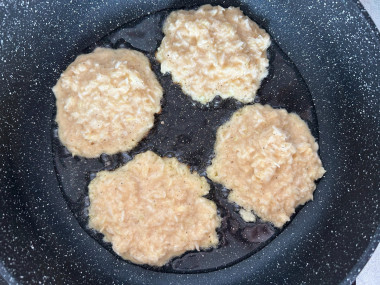 На сковороде разогрейте подсолнечное масло. Столовой ложкой выкладывайте капустное тесто, оставляя между оладушками пространство, так как при жарке они немного увеличатся в размере. Жарьте их на среднем огне около 10 минут с одной стороны, пока они не зарумянятся.
