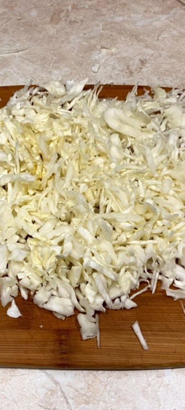 Капусту натрите на средней терке. Легче будет натереть среднюю часть вилка, поскольку верхние листья мягкие. Оставьте их для приготовления салата.