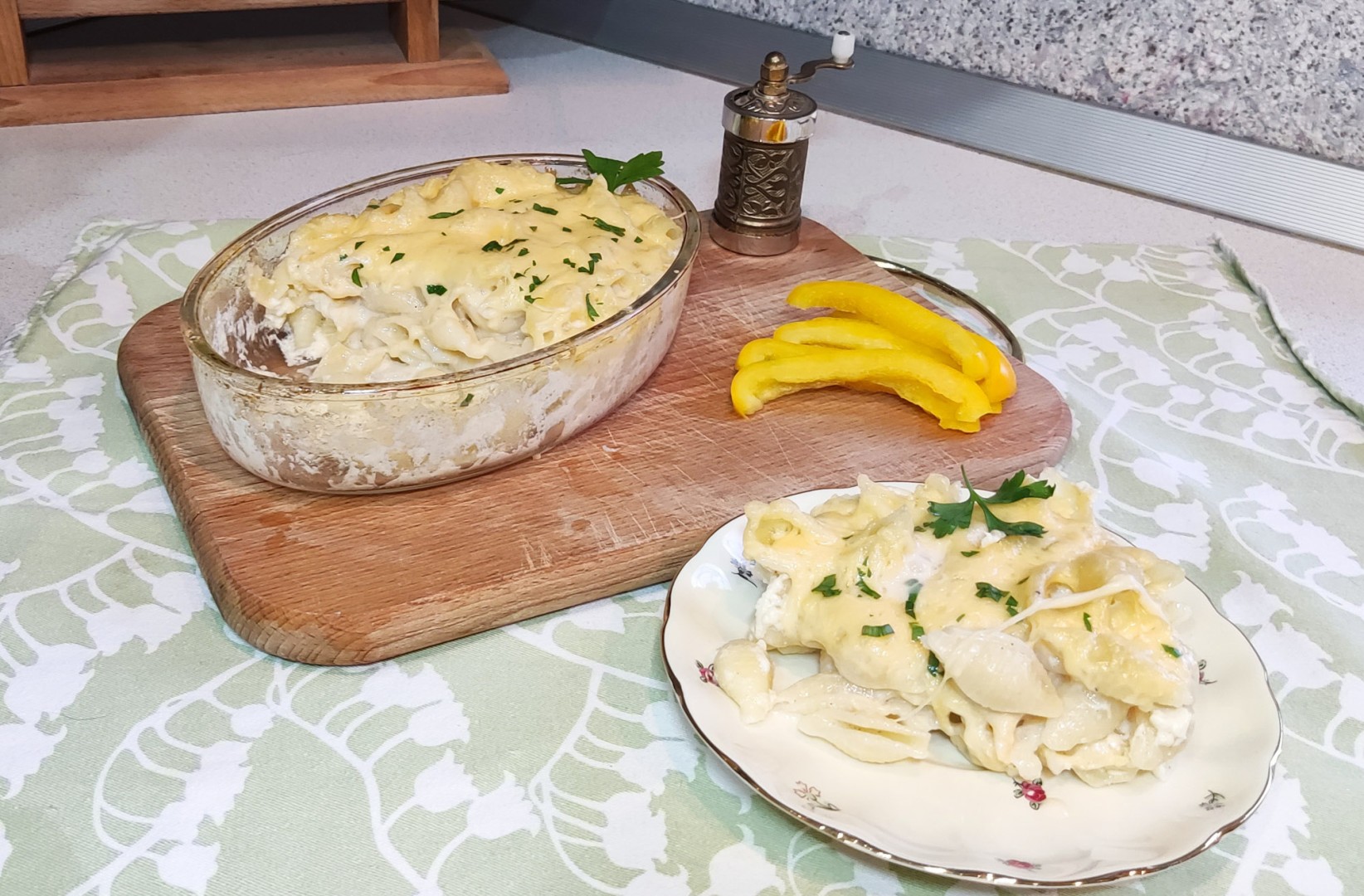 Запеканка с макаронами и сыром в духовке - простой сытный ужин.