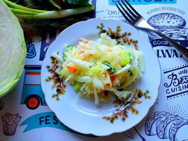Салат Капуста с огурцами на зиму готовится очень просто и быстро. Закатывать в банки я его не стала. Такой салат просто будет дополнением к обеду или ужину.