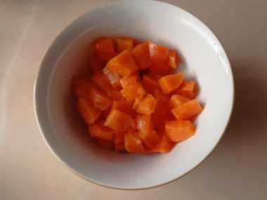 Морковь, очистите и нарежьте кубиками.