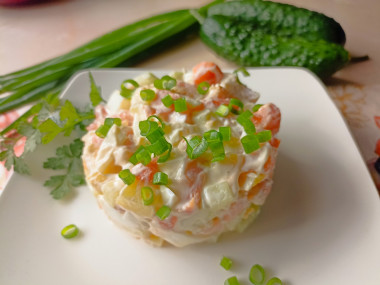 - Овощи лучше варить накануне – так салат будет сочнее