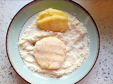 Слепите из каши биточки — круглые лепешки типа сырников. И обваляйте их в муке. Или манке, что возьмете.