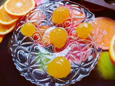 На 7г Агар - агара можно смело брать 5 апельсин. Из 4 апельсин получилось 470 гр вкуснейшего мармелада.