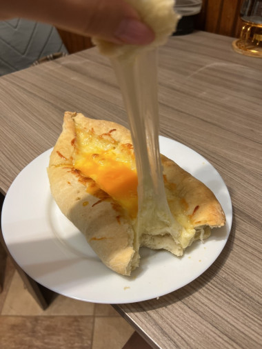 Очень вкусно и сытно, мы с мужем обычно делим такую хачапури на двоих.