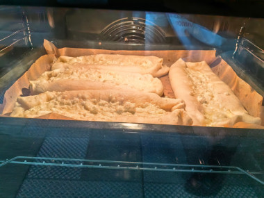 Противень застелите бумагой для выпечки. Выложите заготовки из теста на расстоянии друг от друга, так как они при выпечке вырастут в размере.