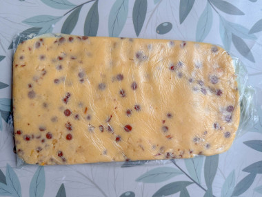 Выложите тесто в пакет или в пищевую пленку и разровняйте в пласт. Уберите тесто в холодильник на 40 минут.