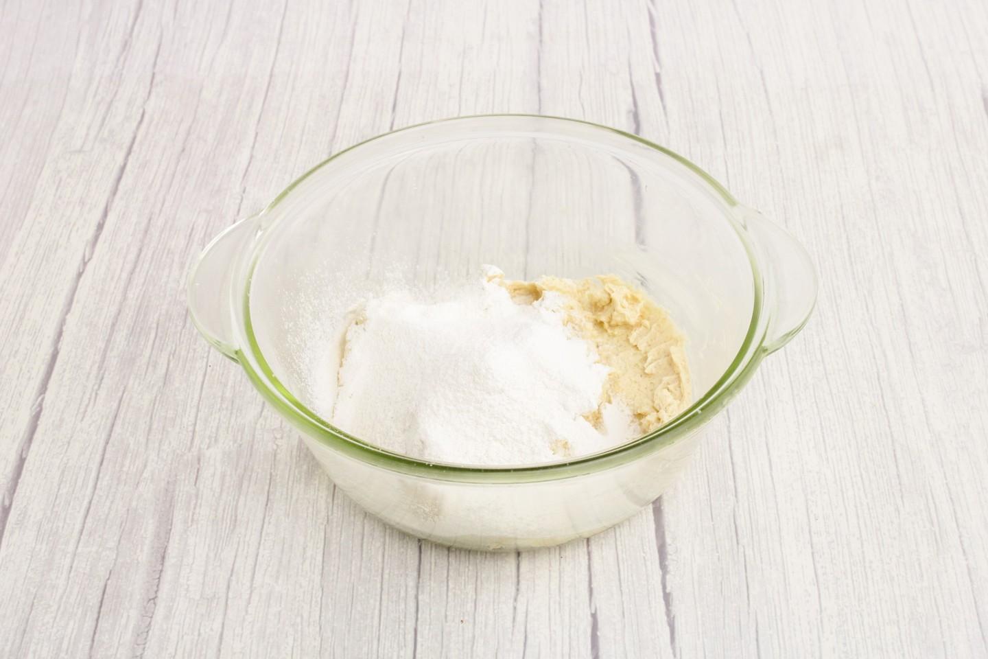 Просейте в тесто муку, смешанную с разрыхлителем. Перемешайте тесто на низкой скорости миксера до однородности. Важно просеять муку, чтобы насытить ее кислородом. Тогда печенье хорошо поднимется при выпекании.