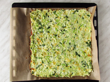 Выложите капустную массу на тефлоновый или силиконовый коврик в виде прямоугольного пласта толщиной около 1 см.