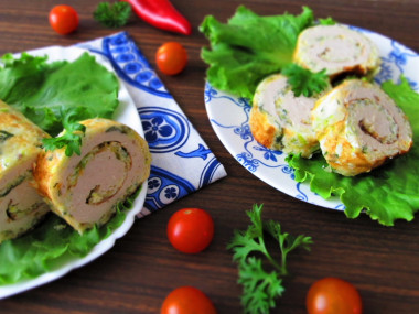 Нарежьте рулет на кусочки и подавайте с любым гарниром или со свежими овощами и зеленью. Приятного аппетита!