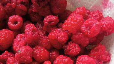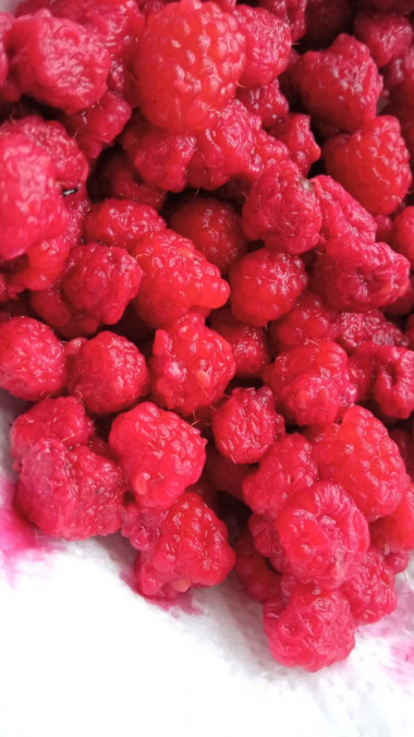 Как заморозить малину на зиму? Для этого нам понадобится только сама малина. Никаких дополнений к ней не требуется. Малину будем замораживать целыми ягодами. Выбирайте самые свежие, крепкие и чистые ягоды без плодоножки. Удалите палочки и листики, если они есть. Идеальным вариантом будет малина сразу в куста. Ягоды малины нежные и не хранятся долго. При таком способе заморозки малину мыть нельзя. Ягоды напитаются влагой и после разморозки расползутся.