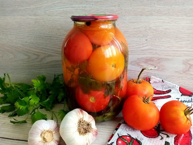 В августе закатала две трехлитровые банки помидор с петрушкой. поэтому на зиму увеличила количество всех компонентов пропорционально.