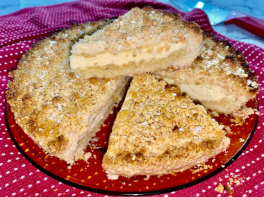 Впервые пеку Творожный пирог с песочной крошкой и у меня она получилась довольно жидкая, поэтому время выпечки у меня удвоилось почти вдвое.