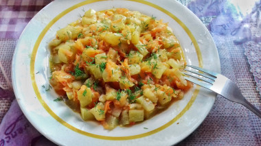 Кабачки кубиками, кожицу я не снимала как пишет автор, держала на плите до испарения влаги. Добавила лук и морковь, натерев на крупной тёрке, обжарила. Из специй добавила соль, сушеные томаты домашнего приготовления и чеснок по совету автора. От себя положила немножко базилика. Блюдо готово! Быстро, просто и очень вкусно!