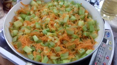 Как сделать кабачковую икру на сковороде кусочками? Подготовьте все необходимые ингредиенты.