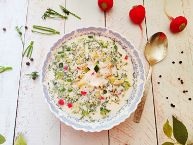 Среди них, на мой вкус, лидирующее место занимают окрошки на кисломолочных напитках.