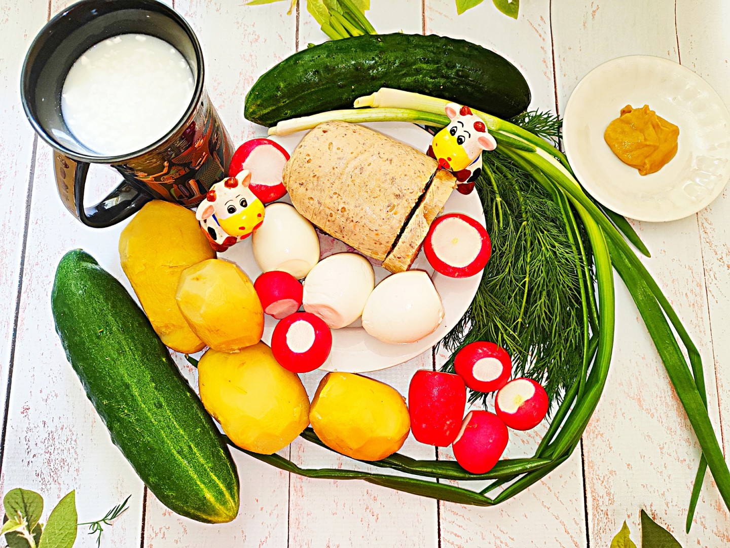 Витамины и минералы: Окрошка обычно готовится с использованием свежих овощей, таких как огурцы, редис, зелень и картофель. Эти ингредиенты богаты витаминами (например, витамин С) и минералами (например, калий), которые необходимы для поддержания здоровья.