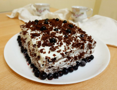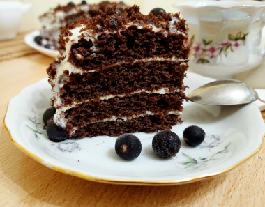 В продолжение темы быстрых вкусных тортиков, хотела поделиться ещё одним фотоотзывом. Я раньше всё время делала обычный медовик по быстрому рецепту, а это решила сделать шоколадный медовик. Принцип приготовления такой же, только в тесто добавляется какао. Готовится тоже очень быстро и просто. Единственное, это касается и обычного медовика, как я не пытаюсь распределить по противню тесто, корж у меня получается немного разный по высоте. Поэтому я, когда разрезаю корж на 4 части, то стараюсь положить эти части друг на друга так, чтобы торт был одинаковой высоты))) Варёной сгущёнки у меня не было, поэтому я внесла изменения в рецепт, и сделала привычный уже для меня крем из 400 г жирной сметаны и 70 г сахарной пудры. Сметану я не отвешиваю, просто беру более жирную. Получился отличный тортик, очень вкусный, очень нежный, с выраженным вкусом шоколада и мёда. А главное, быстрый и простой в приготовлении! Тортик я украсила ягодами смородины и крошкой от коржей.
