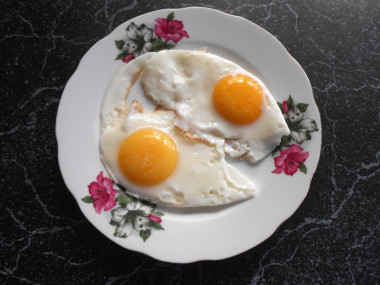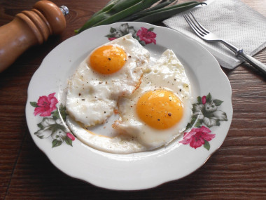Жарьте яйца сначала с открытой крышкой. Когда белок станет белым, закройте крышку. Это необходимо для того, чтобы желток хорошо пропекся внутри. Жарьте яйца в течение 4-5 минут. Этого времени будет достаточно.