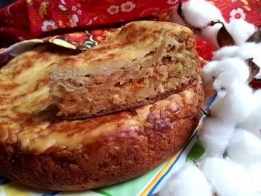 Мне понравился рецепт наливного теста для пирога и пиццы на кефире без дрожжей простотой приготовления. Все ингредиенты просто замешиваются и тесто готово, можно печь пирог. У меня был кефир жирностью 2,5%, я его немного подогрела в микроволновке до тёплого состояния. Затем размешала в нём соль и сахар. Яйца достала из холодильника заранее. Осталось только хорошенько все смешать венчиком. Муки у меня ушло столько же, но все равно смотрела по консистенции. Из этого теста пекла капустный пирог в мультиварке. Пирог получился отличным. Тесто хорошо пропеклось, зарумянилось, сырых мест не было. Буду пользоваться этим рецептом ещё много раз.