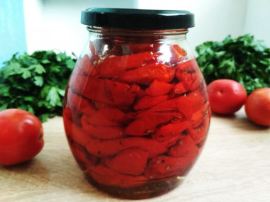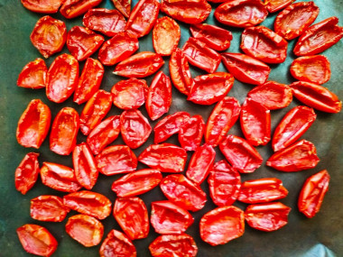 Очень дельный совет о том, чтобы застелить решетку пергаментом, так как помидоры во время приготовления сильно уменьшаются в размерах и могут выпасть сквозь прутья. И ещё мне понравилось в этом рецепте сочетание специй - орегано, тимьян и базилик. Единственный минус этого блюда в том, что оно дорогое - чтобы приготовить небольшую баночку мне потребовалось 2,5 кг помидоров и недешевое оливковое масло по количеству больше, чем в рецепте. Но результат, конечно, великолепный, с вялеными томатами вряд ли что-то сравнится. Банку и крышку не стерилизовала, такой деликатес у нас долго не хранится. Рецепт отличный, рекомендую!