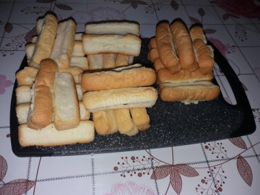 Выстелить противень пергаментом. Тесто переложить в кондитерский мешок. Отсадить 25 небольших палочкек длинной 8 см.
