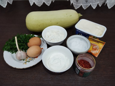 Кабачок натрите на мелкой терке, добавьте соль, затем хорошо отожмите сок.