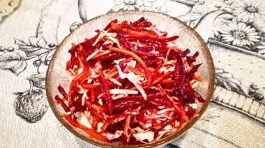 Салат из свежей свеклы моркови и капусты - это новый гастрономический опыт для меня. Получился салат низкокалорийный и очень приятный на вкус. Спасибо за рецепт!