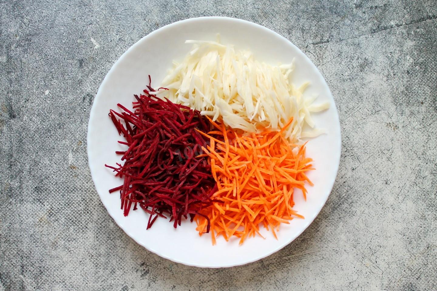 Шаг 1. Как сделать салат Щетка из свежей свеклы моркови и капусты с уксусом?