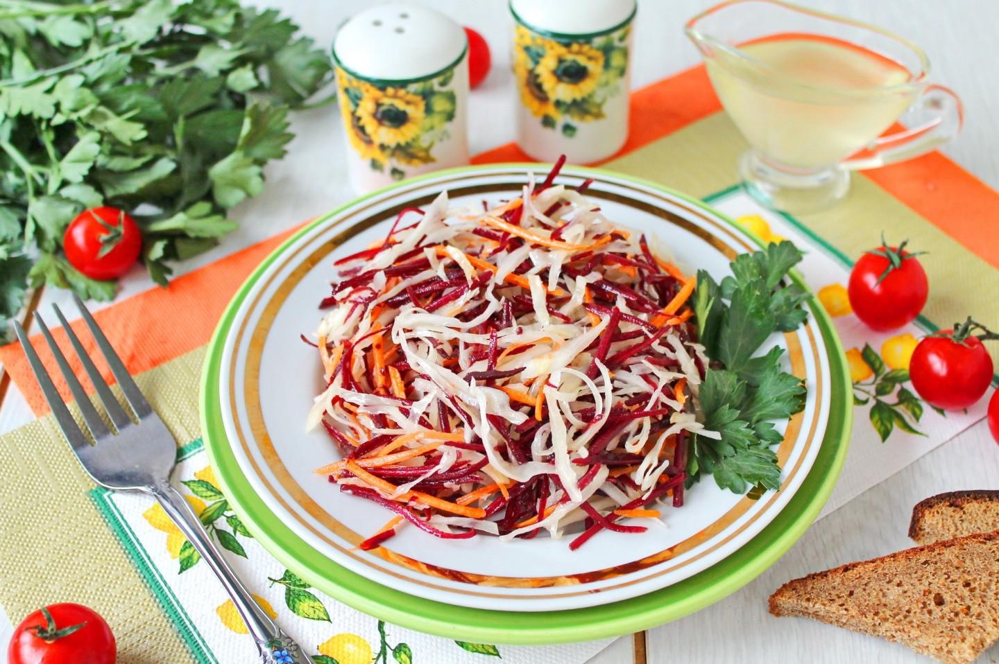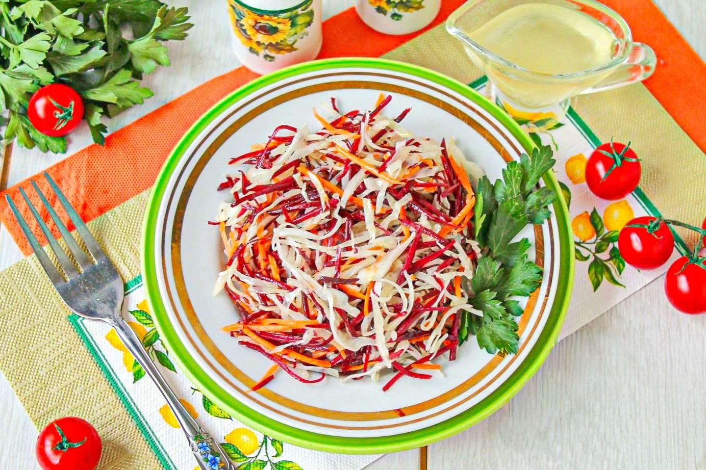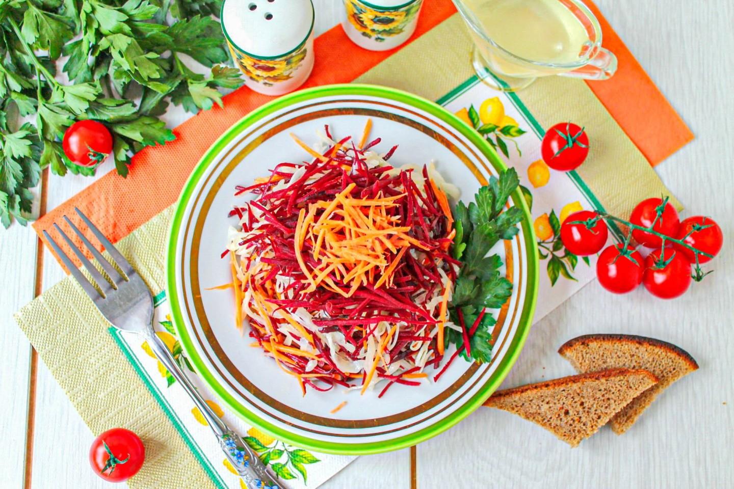 Салат из свежей свеклы моркови и капусты действительно кладезь витаминов!
