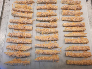Увидела рецепт кабачков дольками в духовке и соблазнилась, это что-то новенькое. Но у меня не вышло приготовить такие красивые кабачки, как у автора. Столкнулась с тем, что к смазанным маслом кусочкам кабачка не прилипали должным образом панировочные сухари с сыром. В итоге сыр подсох, а сухари в готовом блюде так и норовили осыпаться. Хотя на вкус блюдо очень неплохое. Но что-то я не подружилась с этим рецептом, возможно нужно было больше масла наливать на кабачки.