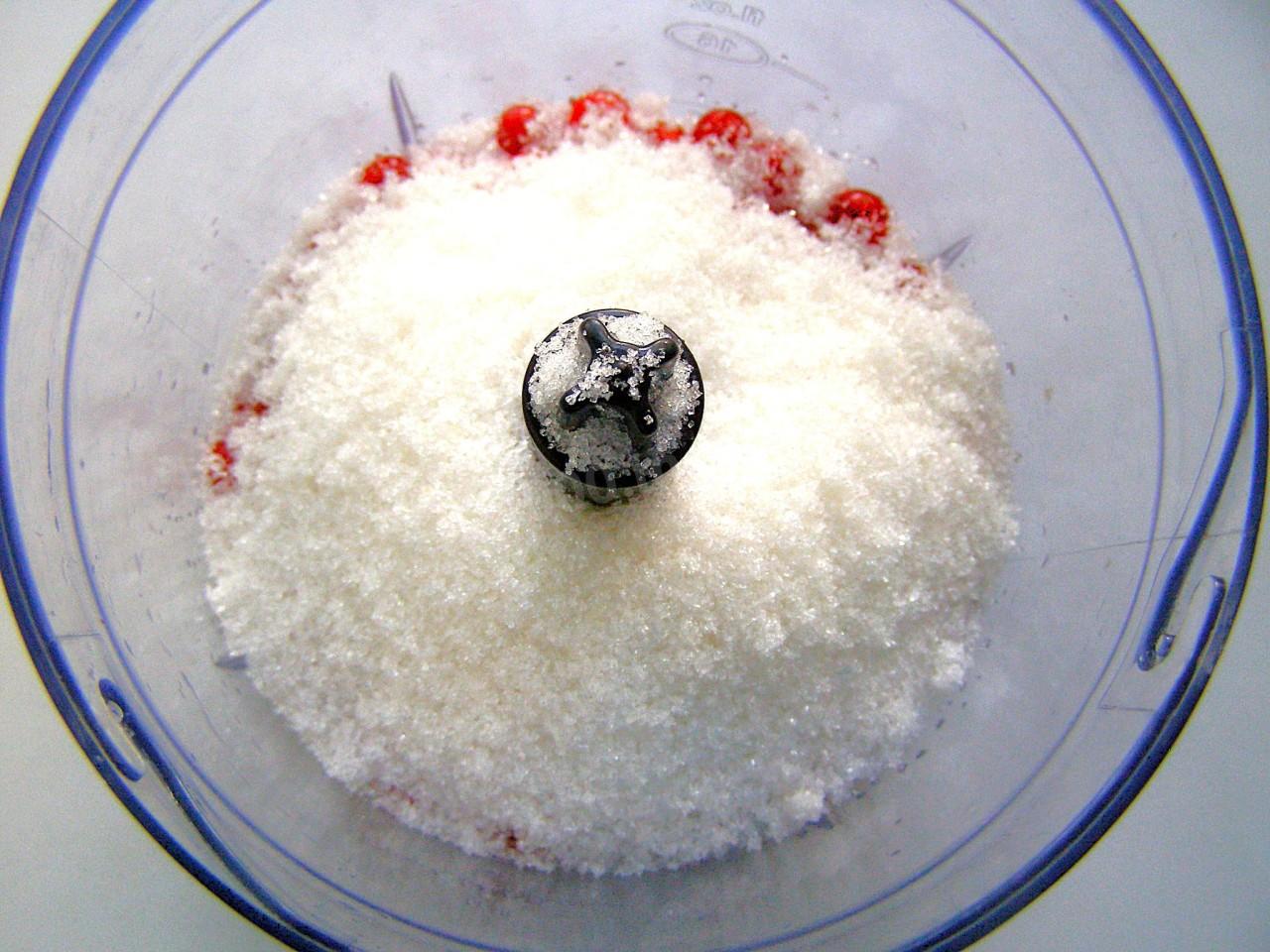 Сахар насыпьте в блендер к калине. Измельчите ягоды в однородную массу. Выбирайте желаемую для вас консистенцию варенья. Ту же манипуляцию проделайте со всей калиной.