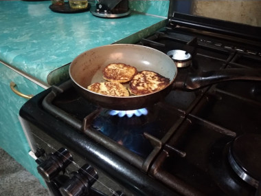 В сковороде разогрейте растительное масло, выложите ложкой немного и на среднем огне обжарьте небольшие оладушки с двух сторон до золотистой корочки. Как выбрать сковороду и масло для жарки читайте в отдельных статьях в конце этого рецепта.