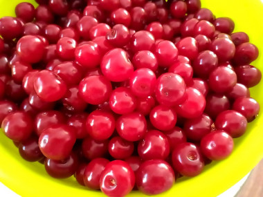 Как сделать варенье из вишни пятиминутка с косточками? Приготовьте необходимые ингредиенты. Понадобится сама вишня и сахар, никаких загустителей и иных добавок не требуется. Конечно лучше использовать вишню, собранную на экологически чистых участках, или выращенную на своем участке. Ягоды переберите, надо убирать мусор, листочки, веточки, гнилые ягодки. Промойте вишню под проточной водой и откиньте на дуршлаг, чтобы стекла вода.