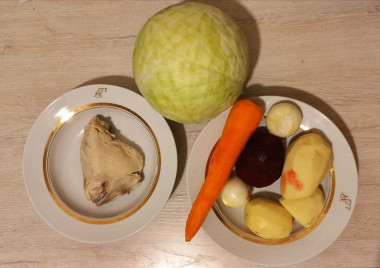 Как сварить борщ с курицей, морковью и свёклой? Подготовьте все необходимые продукты. Курицу можно взять целую или использовать отдельные её части. Я борщ варила из супового куриного набора из заморозки. Белокочанную капусту можете взять любую, у меня молодая. Количество овощей в супе указано примерно, можно менять пропорции на свой вкус.