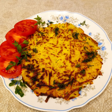 Люблю картошку во всех её видах. Конечно, мимо этого рецепта я пройти не могла. При виде только одной хрустящей корочки можно язык проглотить! Картошку натерла на крупной терке и слегка отжала. И даже не стала добавлять никаких трав, чтобы насладиться вкусом. Только смесь ароматных перцев из мельнички. Перевернула при помощи тарелки и вот оно, сливочно - картофельное хрустящее счастье на завтрак! Солнышко на тарелке, день удался! Автору большое спасибо!