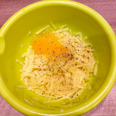 2. Добавить яйцо, посолить, поперчить, перемешать.