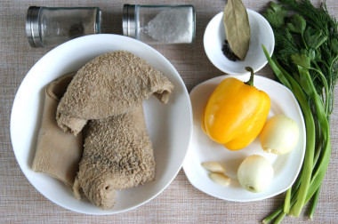 1. Говяжий рубец предварительно чистим ножом. В особенности это касается ворсистой части рубца, зачастую там можно обнаружить частички грязи.
