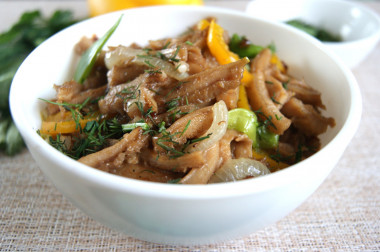 Сварила рубец по рецепту, и пока он остывал подготовила овощи.