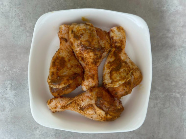В получившийся соус выложите куриные ножки и хорошо перемешайте, чтобы соус равномерно распределился по курице. Оставьте мариноваться на 30-40 минут.