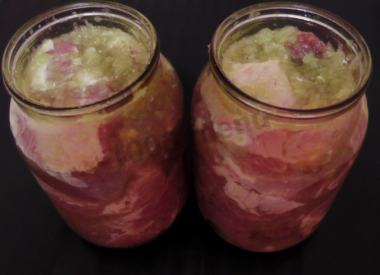 5. Плотно упаковать мясо в трехлитровую банку с крышкой.