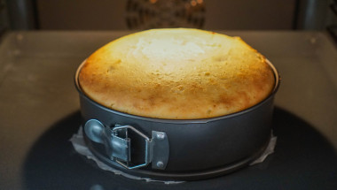 Выпекала в разъемной форме, предварительно застелив дно пергаментной бумагой, а бортики смазала растительным маслом. В моей духовке запеканка выпекалась около часа. По мере выпекания запеканка румянилась и поднималась, а по мере остывания немного осела.