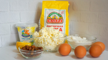 Как сделать классическую творожную запеканку с изюмом? Подготовьте для этого все необходимые ингредиенты по списку. Творог выбирайте мягкий и немного влажный. При необходимости протрите его через сито, чтобы сделать структуру более однородную.