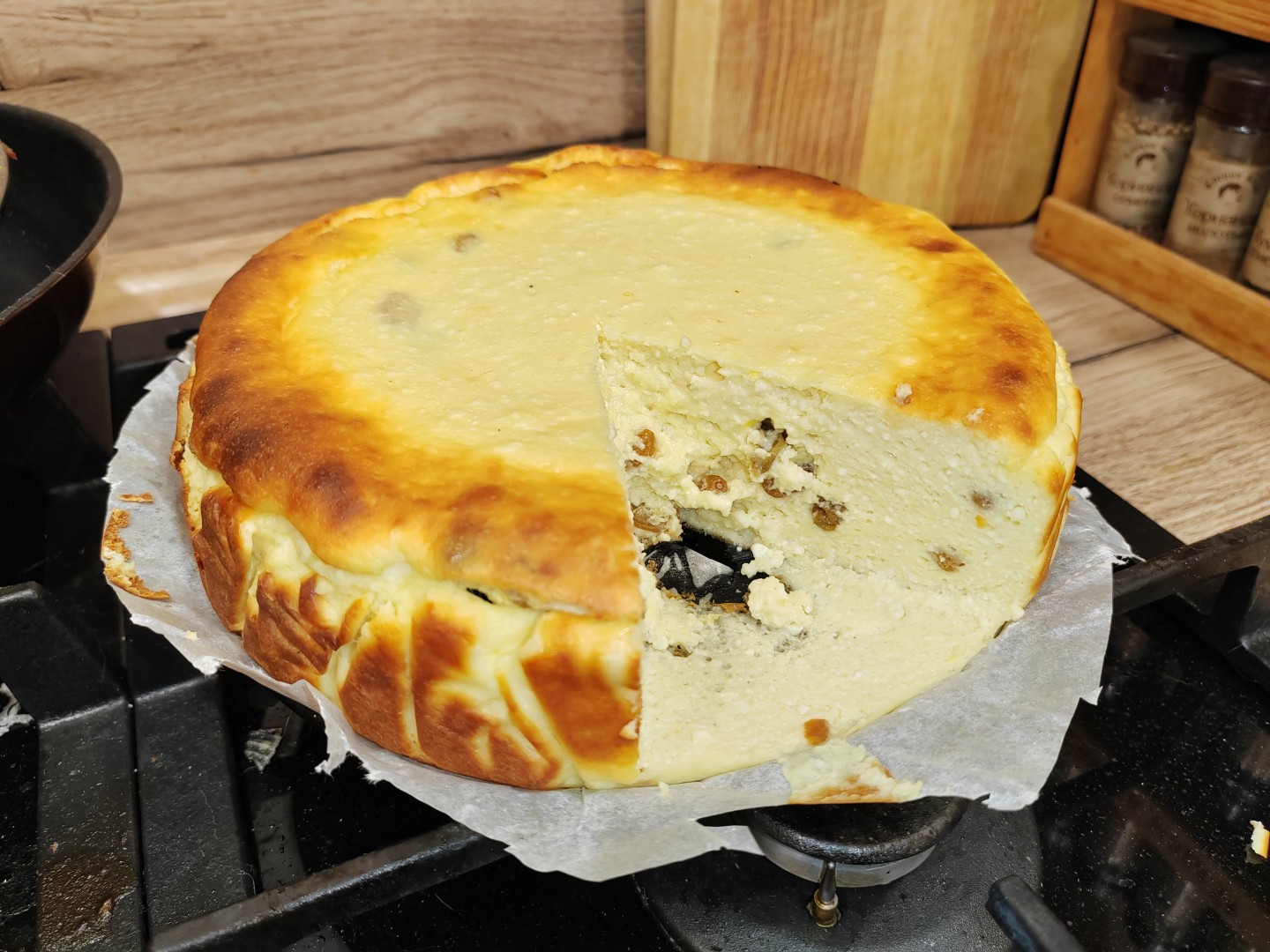 К чаю решила приготовить классическую запеканку из творога с изюмом с духовке. Подготовила ингредиенты по списку, творожное тесто готовила строго по рецепту, добавила лимонную цедру и изюм.