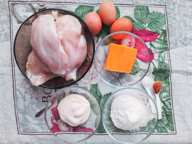 Приготовила на ужин отбивные из куриного филе с сыром. Сыр я использовала пармезан, а вместо молотого перца приправу для курицы. Первым делом нужно нарезала куриное филе на порционные куски и отбила молотком с двух сторон. Посолила и добавила приправы. Кляр готовится легко и из доступных ингредиентов. Соединила яйца с майонезом и добавила муки. Сыр натерла на крупной тёрке. Я обмакнула в кляр куриные ломтики со всех сторон сразу и обжарила до корочки, а затем уже в конце посыпала сыром. Получилось вкусно и нежно! Спасибо!