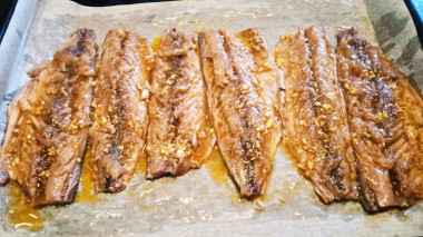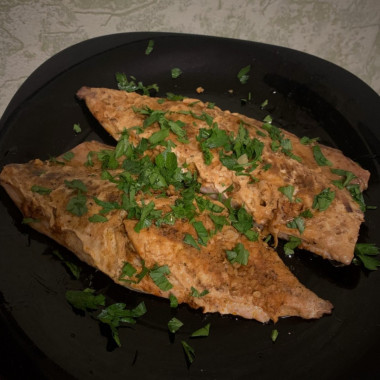 Мы с моим молодым человеком очень любим скумбрию, и я часто готовлю ее на ужин. Для разнообразия решила приготовить скумбрию, запечённую с чесноком и паприкой по этому рецепту. Все делала по рецепту, от себя только сбрызнула филе лимонным соком, а в маринад добавила молотый чёрный перец. Запекала на пергаменте в стеклянной форме. Ох и аромат был на всю квартиру! После приготовления посыпала зеленью петрушки. Кушали рыбку без гарнира, просто с овощным салатом, но думаю и с гарниром, например, с картофельным пюре, было бы отлично. В общем, ужином мы остались очень довольны, рецепт себе сохранила, буду готовить ещё!