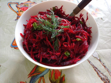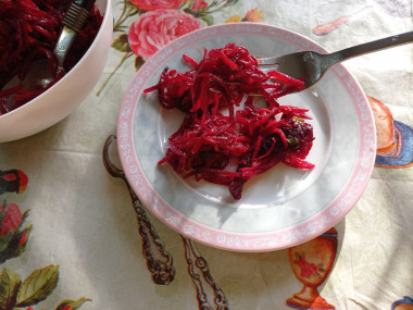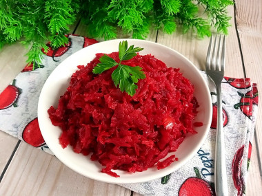Вкус свекольной закуски очень приятный, гармоничный. Я бы добавила ещё чеснока, мне кажется, он сюда отлично подойдёт.