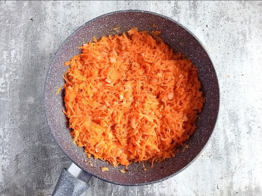 Лук уже готов, мы к нему добавляем морковь и оставляем на медленном огне, что бы она чуть прихватилась и стала мягче. В случае если свекла была сырой, добавляем ее к луку вместе с морковкой. Если же заранее отварили, значит, добавляем ее в последнюю очередь.