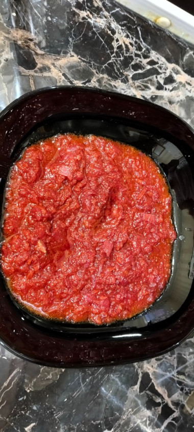 Свежие томаты → томатная паста (2-3 ст. л. на 1 кг овощей)