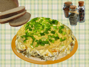 Также в качестве заправки можно использовать не только майонез, но и сметану или натуральный йогурт. Их можно взять по отдельности либо смешать с майонезом в любой пропорции на свой вкус - это снизит калорийность блюда.